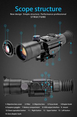 Onze monoculaire schermen zijn vervaardigd in China en beschikken over een camera-resolutie van 1920×1080, een optische vergroting van 5X en een objectieflensopening van 50 mm.De camera sensor is CMOS en de infrarood lichtgolf is 850nm, waardoor zelfs bij weinig licht scherp en helder beeld wordt gegarandeerd.